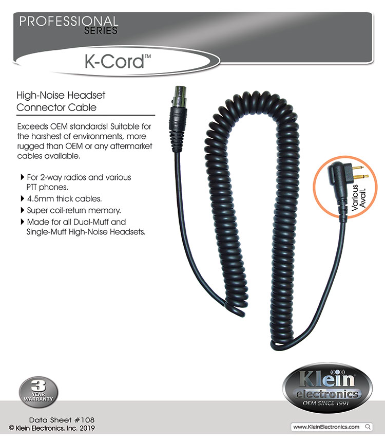 K-CORD Pro Headset Cables for 2-Way Radios